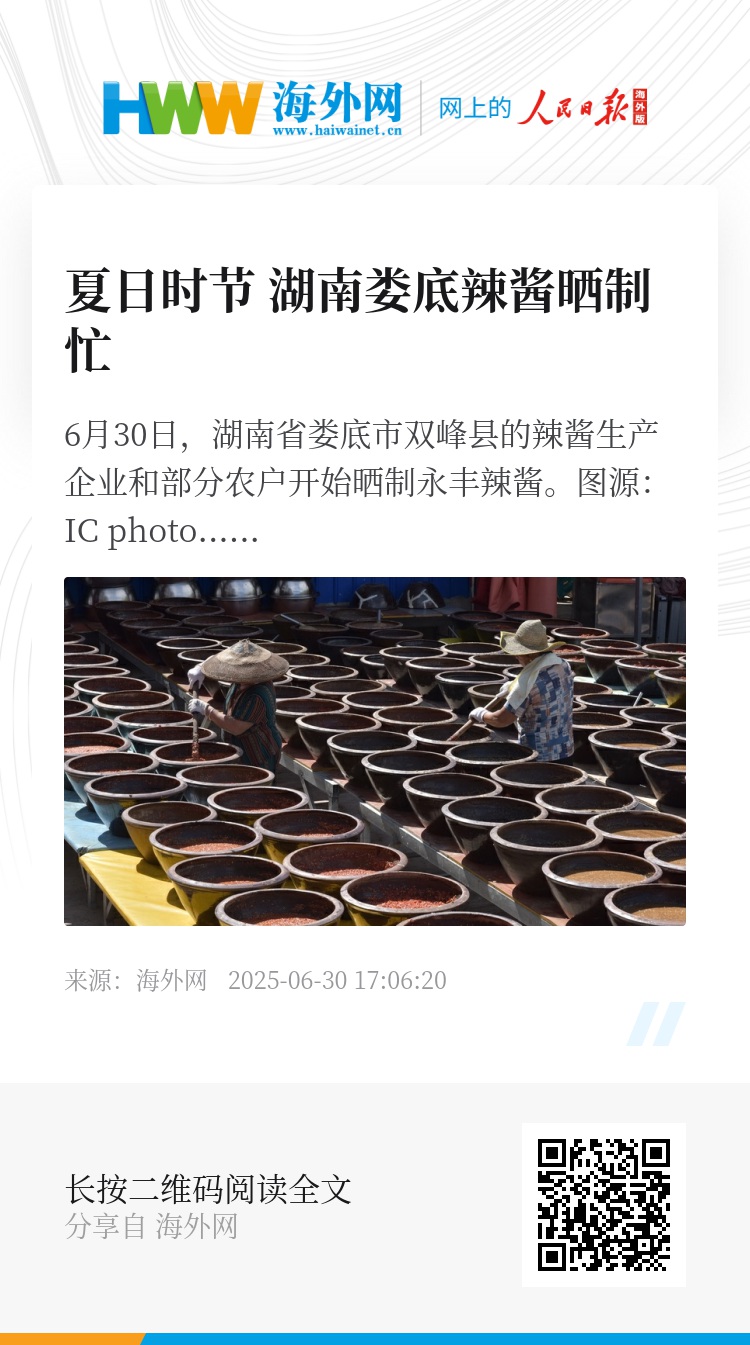 32874968,.夏日时节 湖南娄底辣酱晒制忙,.2025-06-30 17:07:20,.204428,.张青津、陈亚楠
