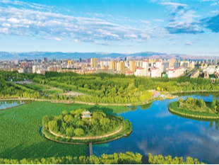 雨后初晴的甘肃省张掖国家湿地公园碧水蓝天,绿意盎然,景美如画。杨永伟摄(人民图片)