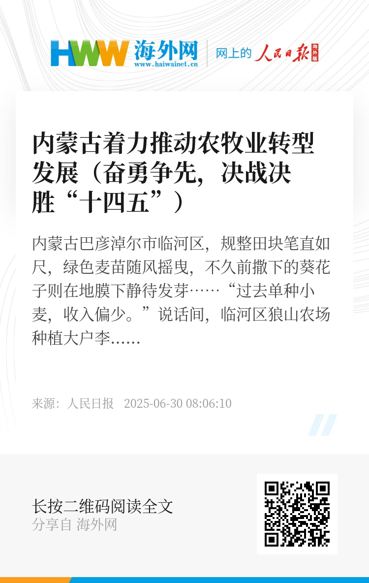 “我们精选品种,探索因地制宜的高效种植模式。同时,发展优质饲草及奶牛、肉牛、肉羊等优势产业,让农牧民实现产量收入双丰收。”临河区农牧和科技局副局长苗三明介绍。