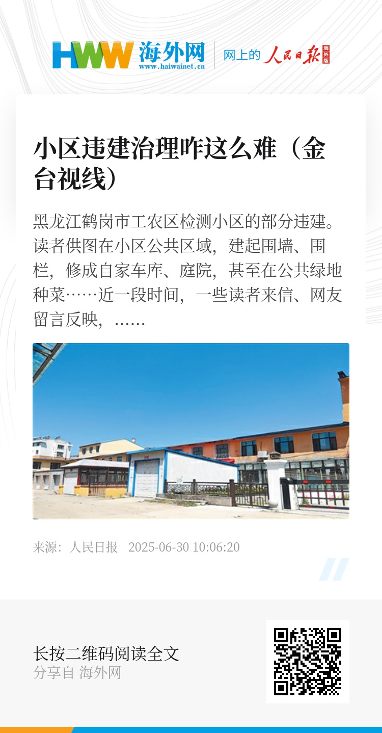 像鹤岗检测小区这样的违建问题并非个案,从读者网友投诉来看,违建现象十分常见。