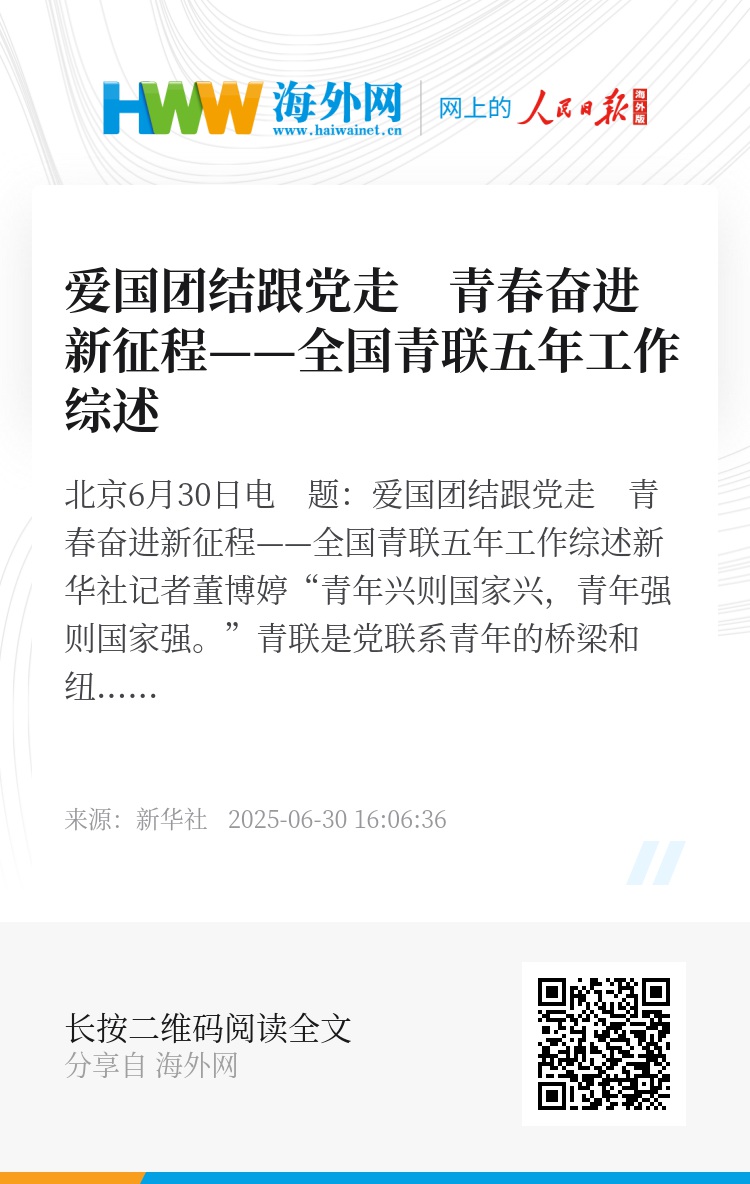 新华社北京6月30日电 题:爱国团结跟党走 青春奋进新征程——全国青联五年工作综述