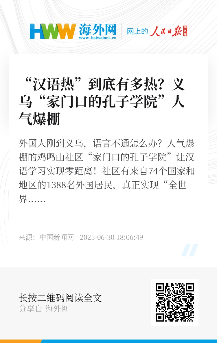 外国人刚到义乌,语言不通怎么办?人气爆棚的鸡鸣山社区“家门口的孔子学院”让汉语学习实现零距离!社区有来自74个国家和地区的1388名外国居民,真正实现“全世界都在讲中国话”。中文课程覆盖初级到中级,还有各种各样的精彩系列活动。快来报名入学吧!