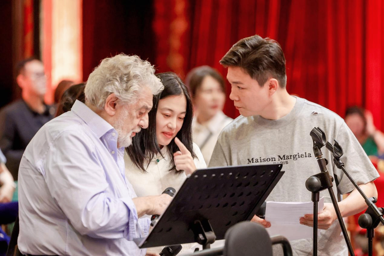 (普拉西多·多明戈与青年艺术家马飞、王传越)
