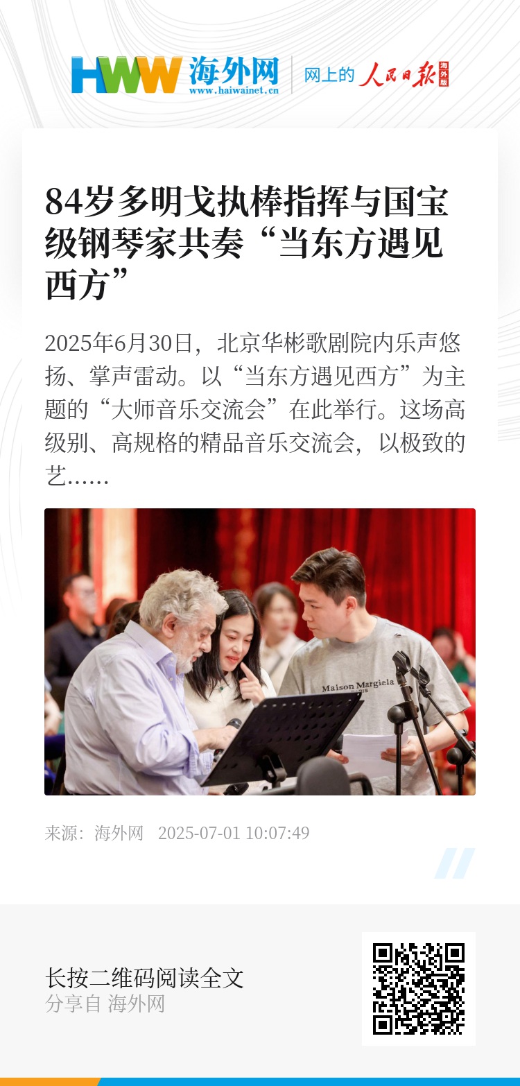 2025年6月30日,北京华彬歌剧院内乐声悠扬、掌声雷动。以“当东方遇见西方”为主题的“大师音乐交流会”在此举行。这场高级别、高规格的精品音乐交流会,以极致的艺术水准与深邃的文化内涵,向中国共产党成立104周年献上深情礼赞。