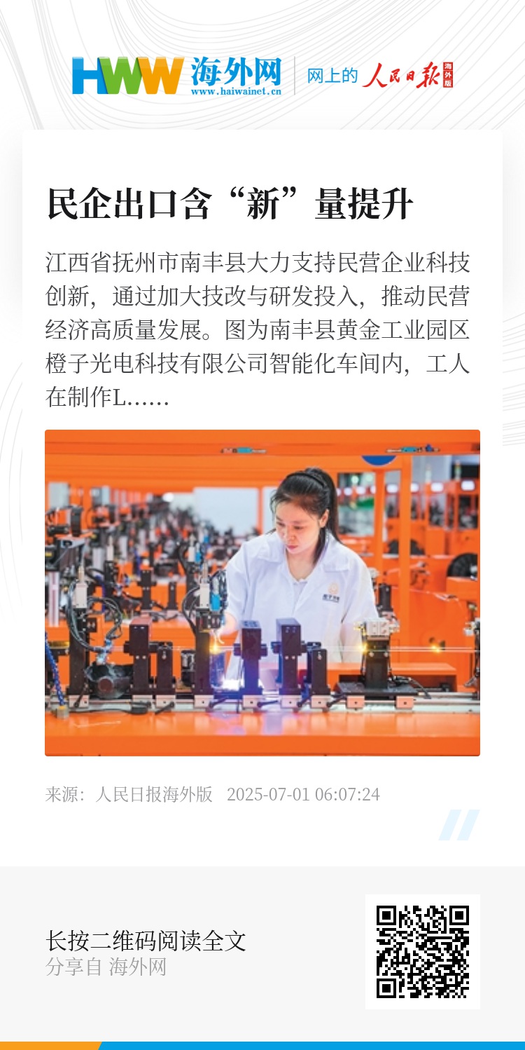 “这标志着中国外贸结构正从规模驱动转向创新驱动。”北京工商大学新商业经济研究院院长周清杰对记者分析,这一转变的核心支撑在于三个方面:一是研发投入转化效率持续提升,民企研发费用占销售收入比重逐年提高,推动出口产品技术附加值显著增长;二是专利与标准输出能力增强,在光伏、机器人等领域形成具有国际影响力的技术专利池,民企在部分领域实现从技术追随到标准制定的跨越;三是中间品贸易结构升级,高精度元器件、核心模组等关键中间品出口占比扩大,凸显民企在全球产业链中的技术话语权提升。