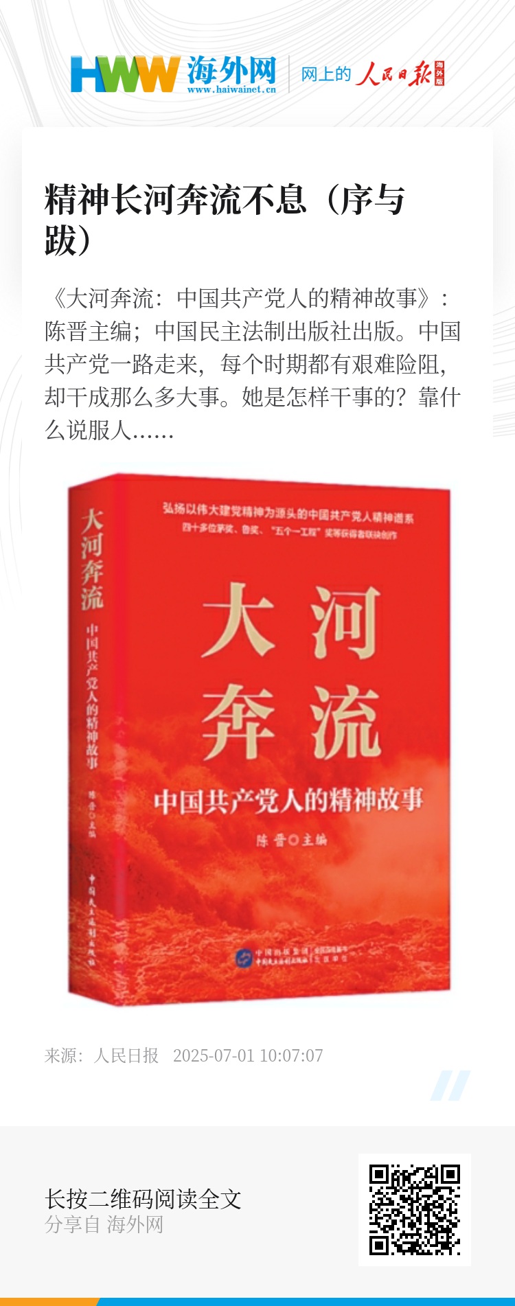 如果只有理念口号,而不能落到实处见人见事,那样的精神是感动不了人、影响不了人的。中国共产党人的精神谱系,正是因为这一个又一个落小落细落实的地点、人物、事件而跨越时空、历久弥新。让伟大的精神伟大起来,成为永恒;让中国共产党人的精神长河奔流不息,永远向前。这正是新时代传承和弘扬中国共产党人的精神谱系目的所在,也是《大河奔流:中国共产党人的精神故事》一书作者们的追求所在。