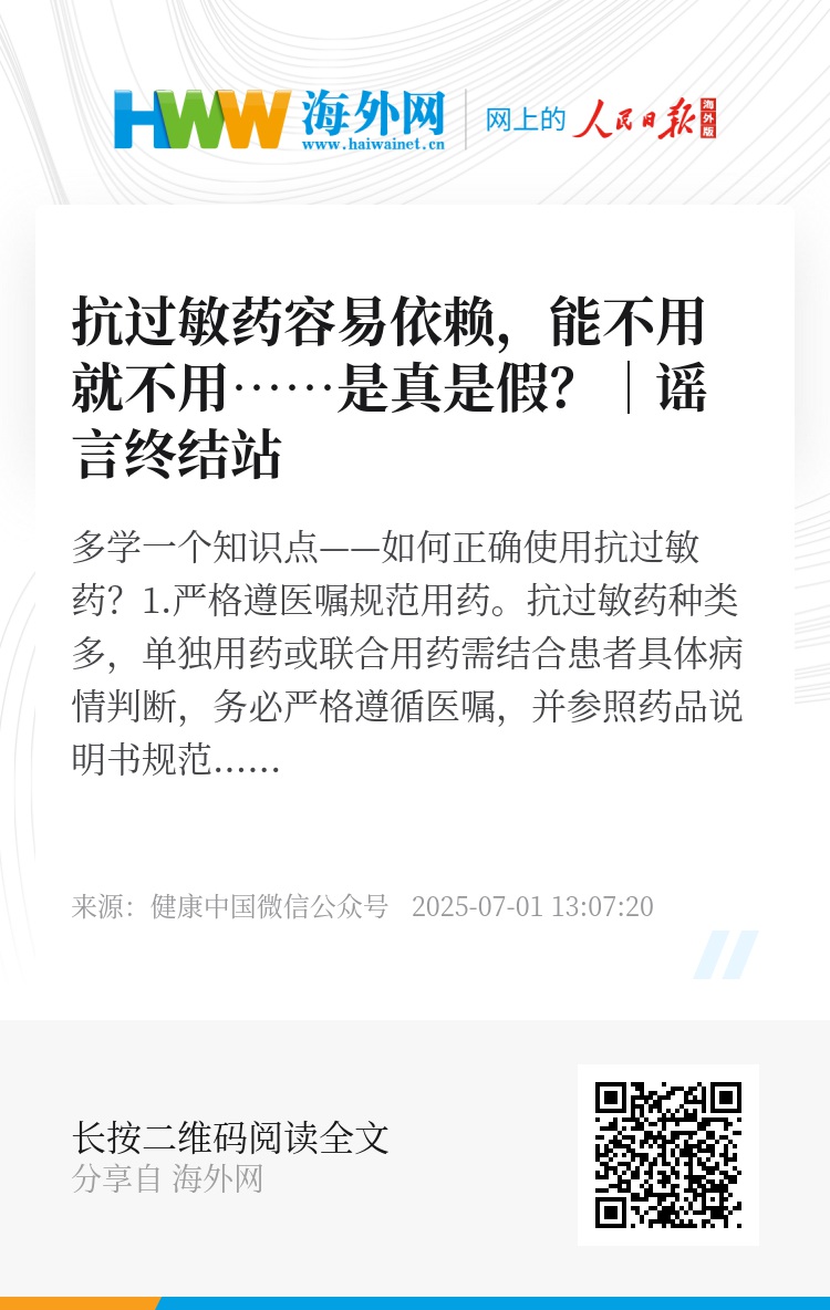抗过敏药的安全性和疗效已得到广泛验证,在医生指导下科学用药,合理平衡疗效与风险,才能有效管理过敏性疾病。