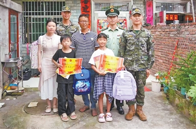 6月28日下午,江西抚州市乐安县第二小学二年级学生张德众的家里,迎来了几名“特殊”的客人。武警抚州支队执勤二大队乐安中队的官兵和乐安县第二小学的老师一起,带着两张“学雷锋小卫士”的奖状、崭新的书包和练习册前来拜访。