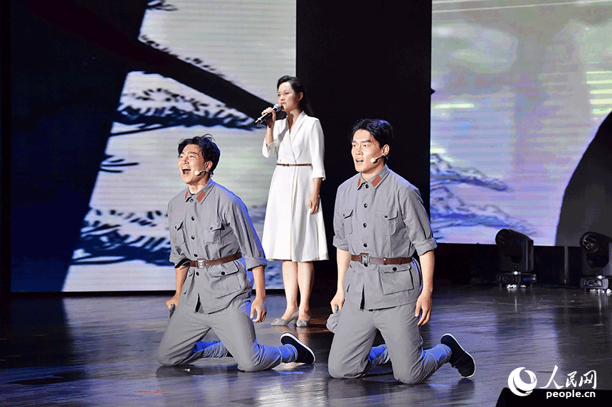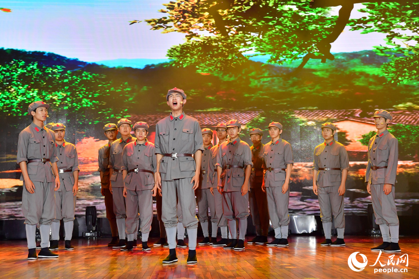 江西师范大学的师生们激情演绎《红土魂|十七棵松》。人民网记者 时雨摄
