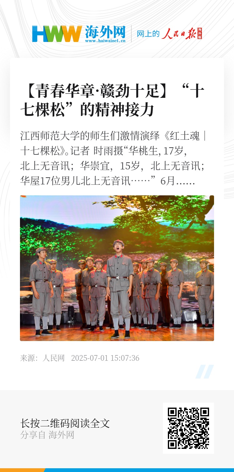 苍穹之下,青松为证。如今,华屋村成为传承红色精神的重要阵地,越来越多的人慕名而来,聆听这段感人至深的革命故事,将这17棵松树誉为“信念树”。站在新的历史坐标上,我们欣喜地看到,那份坚如磐石的信念,正代代相传、生生不息,照亮中华民族伟大复兴的奋进之路。(人民网记者 罗娜)