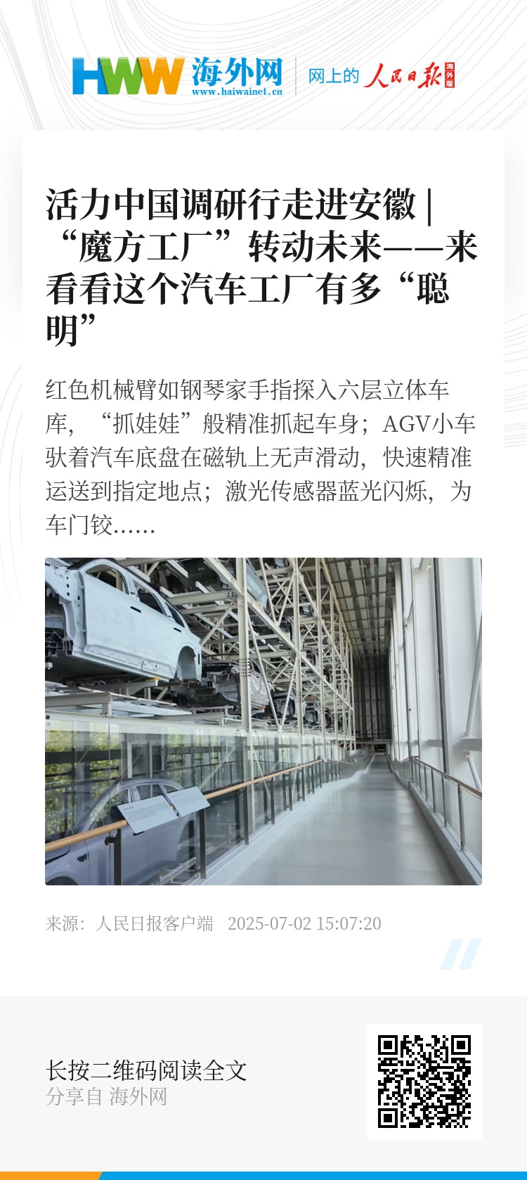 江淮大地创新潮涌,活力澎湃,安徽智造的新故事正在书写。当科技创新融入产业血脉,这片昔日的汽车“后发之地”,已转动出引领未来的澎湃动能。(人民日报客户端安徽频道 杨子岩 孔德晨 田先进)