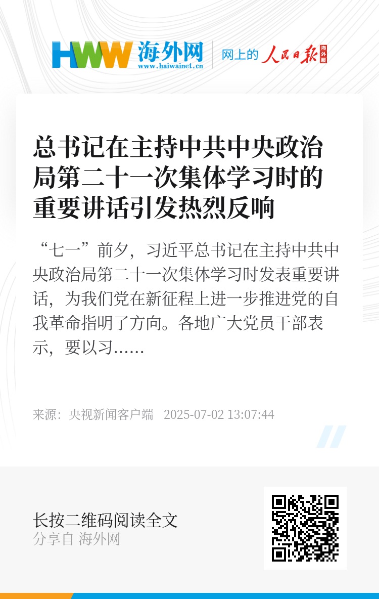 “七一”前夕,习近平总书记在主持中共中央政治局第二十一次集体学习时发表重要讲话,为我们党在新征程上进一步推进党的自我革命指明了方向。各地广大党员干部表示,要以习近平总书记重要讲话精神为指引,自觉把新时代党的自我革命要求进一步落实到位,为党和国家事业发展,为中国式现代化建设凝聚起强大正能量。