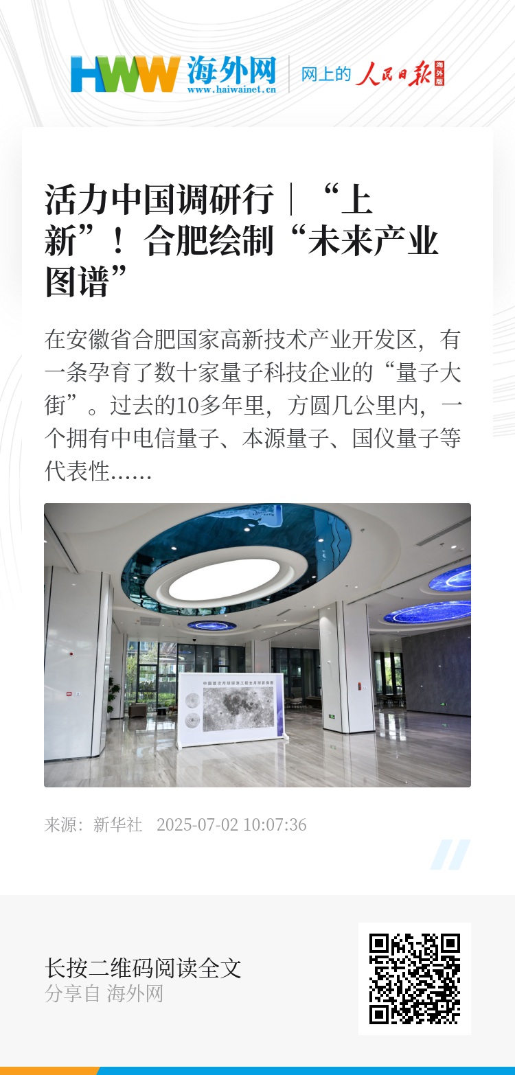 “将科学家的视野同企业的视角相结合,能够加快相关科研成果的产业转化。”吕品说,当下,合肥正在打造“量子科学”“量子产业”双高地,这为企业提供了发展源动力。