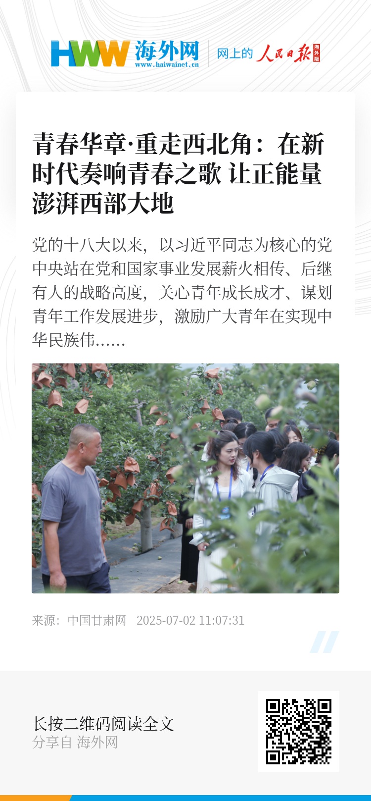 青春的力量在陇原大地绽放