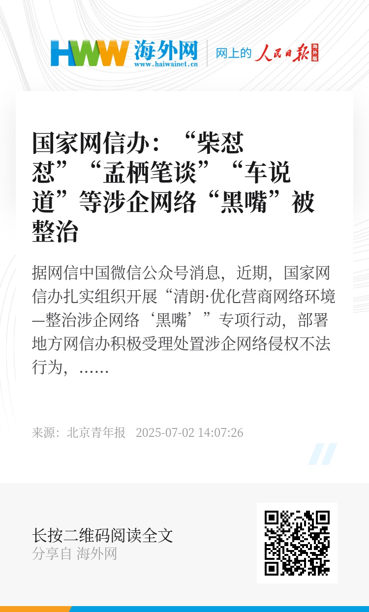 据网信中国微信公众号消息,近期,国家网信办扎实组织开展“清朗·优化营商网络环境—整治涉企网络‘黑嘴’”专项行动,部署地方网信办积极受理处置涉企网络侵权不法行为,督促重点网站平台强化涉企信息内容管理,从严从快处置一批涉企违法违规账号。现将部分典型案例通报如下。