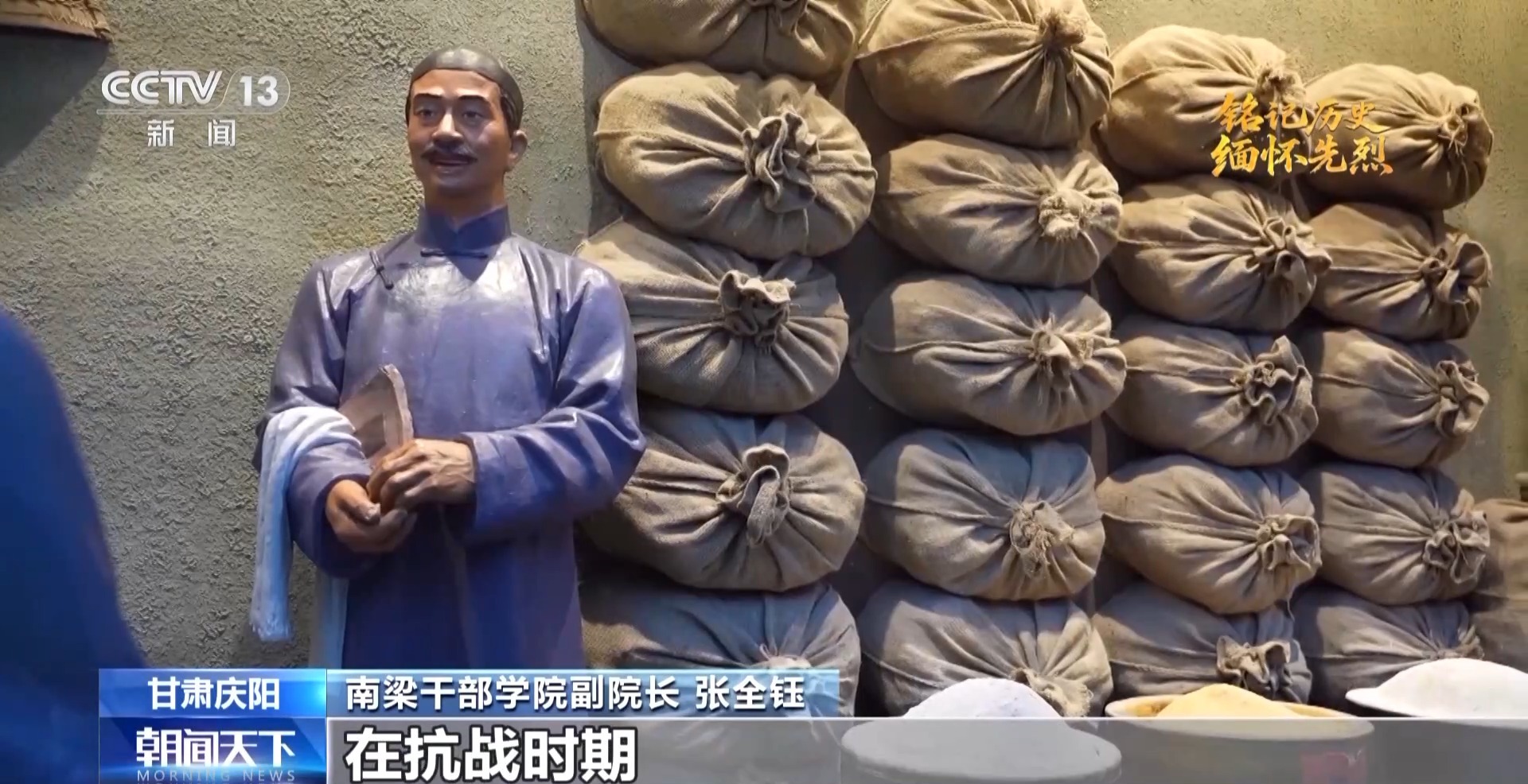 南梁干部学院副院长 张全钰:庆阳地区先后有3000多名青年参加八路军,奔赴抗日前线,庆阳也是被称为“陇东粮仓”,作为陕甘宁边区的重要组成部分,在抗战时期,据不完全统计,先后提供公粮达到了2亿多斤,为我们的陕甘宁边区和抗日战争也提供了丰厚的物资保障。