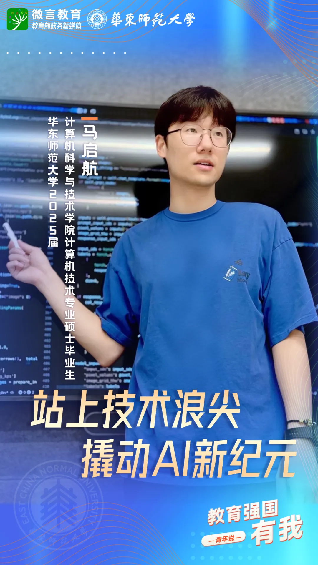 习近平总书记强调,希望广大青年坚定理想信念,厚植家国情怀,练就过硬本领,发扬奋斗精神,到祖国和人民最需要的地方发光发热,为中国式现代化建设贡献青春力量。教育强国建设,青年何为?教育部政务新媒体推出“教育强国,有我!”网络主题宣传活动之“青年说(报国篇)”系列,展现青年学子将个人理想融入国家发展的青春担当。今天,跟教育小微通过1个视频和1组海报,一起来看华东师范大学学子如何“向新而行”——
