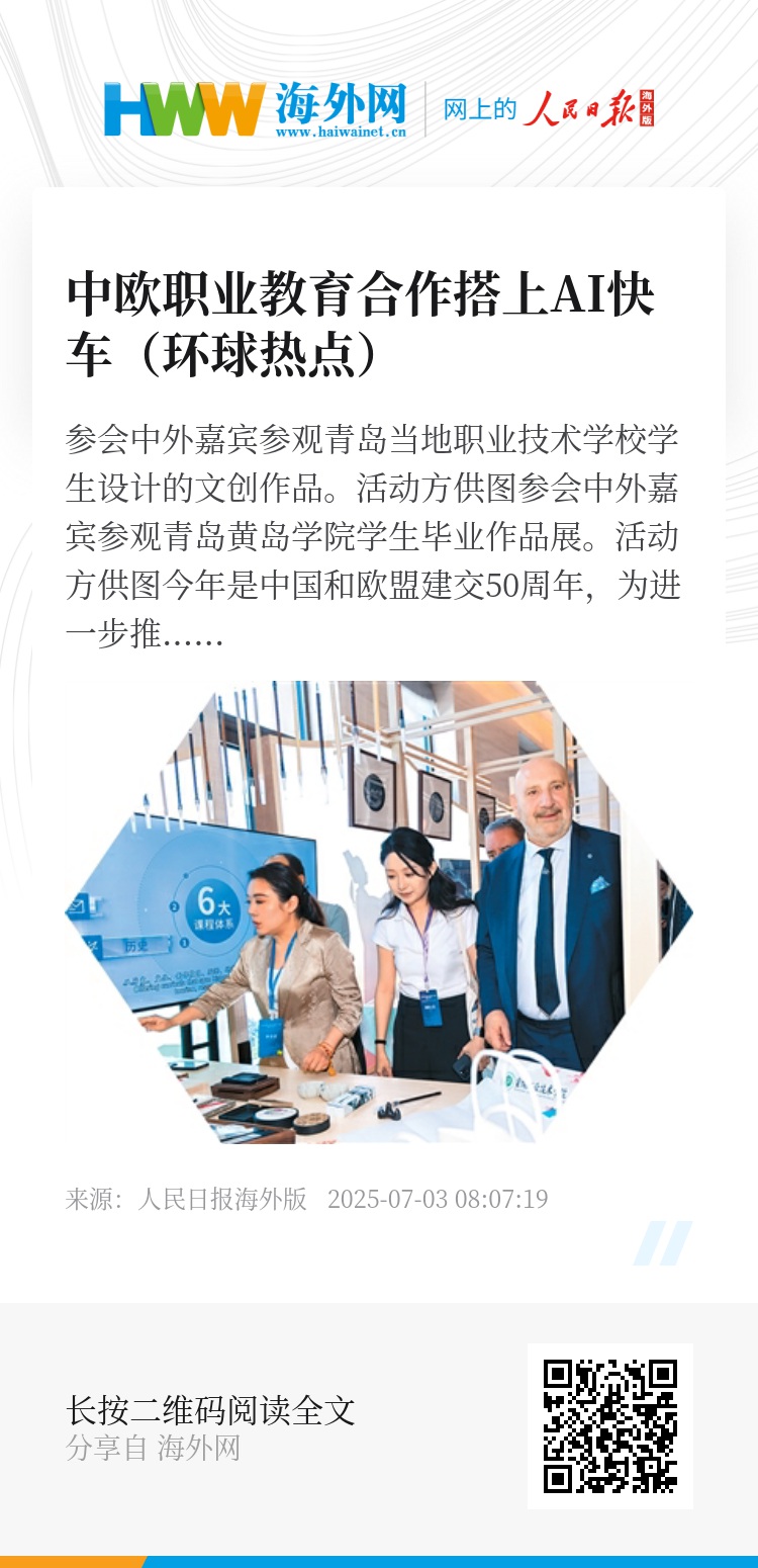 这是中欧职业教育合作的一个生动缩影。职业教育作为连接教育链、人才链与产业链、创新链的关键纽带,是多年来中欧深化务实合作的重要领域。