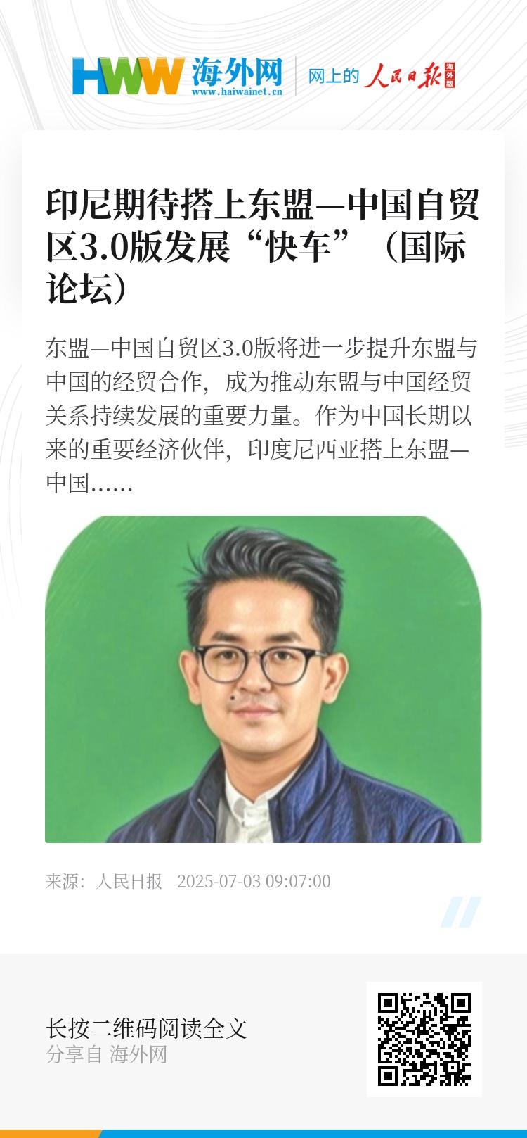 一段时间来,美国的关税措施给地区发展带来了共同挑战。印尼同中国应加强合作,确保东盟—中国自贸区3.0版的发展方向与《区域全面经济伙伴关系协定》(RCEP)确立的规则相契合,并在此基础上不断拓展经贸“朋友圈”,提升共同应对外部挑战的能力。两国还应加快推动新能源和高科技领域合作,进一步拓展全球市场,同时充分利用各类交流平台,共同应对保护主义挑战,携手构建开放、包容、互利的区域经济格局。