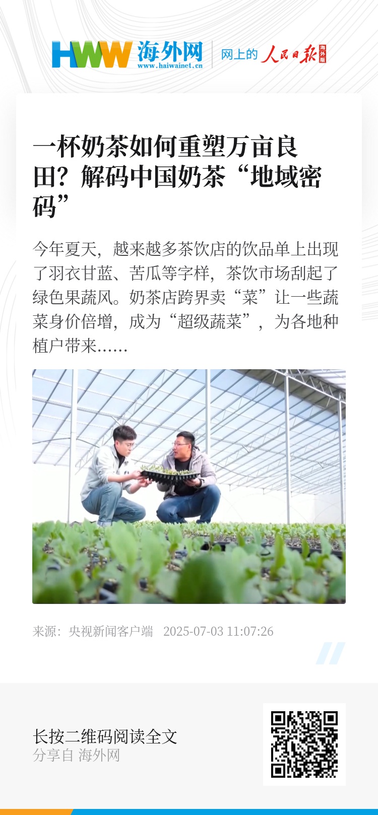 奶茶店跨界卖“菜”让一些蔬菜身价倍增,成为“超级蔬菜”,为各地种植户带来了新的发展机遇。