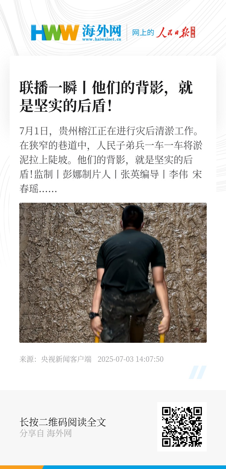 7月1日,贵州榕江正在进行灾后清淤工作。在狭窄的巷道中,人民子弟兵一车一车将淤泥拉上陡坡。他们的背影,就是坚实的后盾!