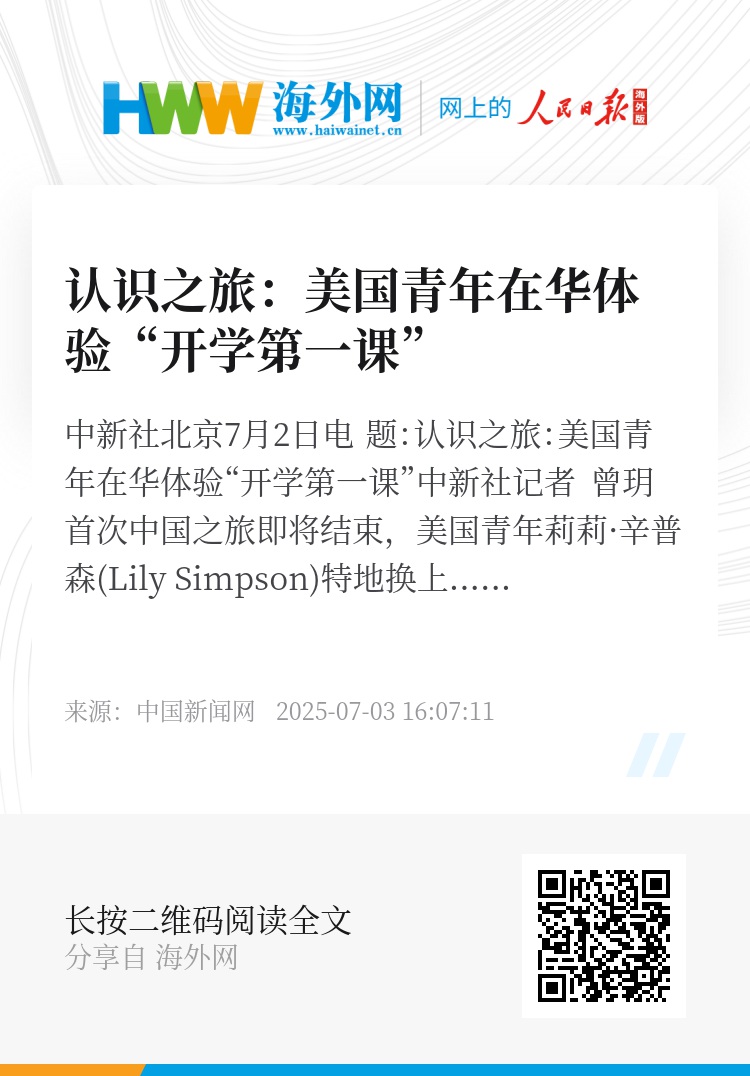 中新社北京7月2日电 题:认识之旅:美国青年在华体验“开学第一课”