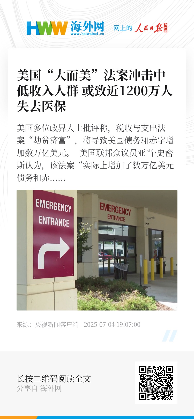 耶鲁大学预算实验室政策分析副主任约翰·里科称,该法案将使“中低收入的美国人情况更糟”,对医疗补助等援助项目的削减将对这一群体产生最大冲击。