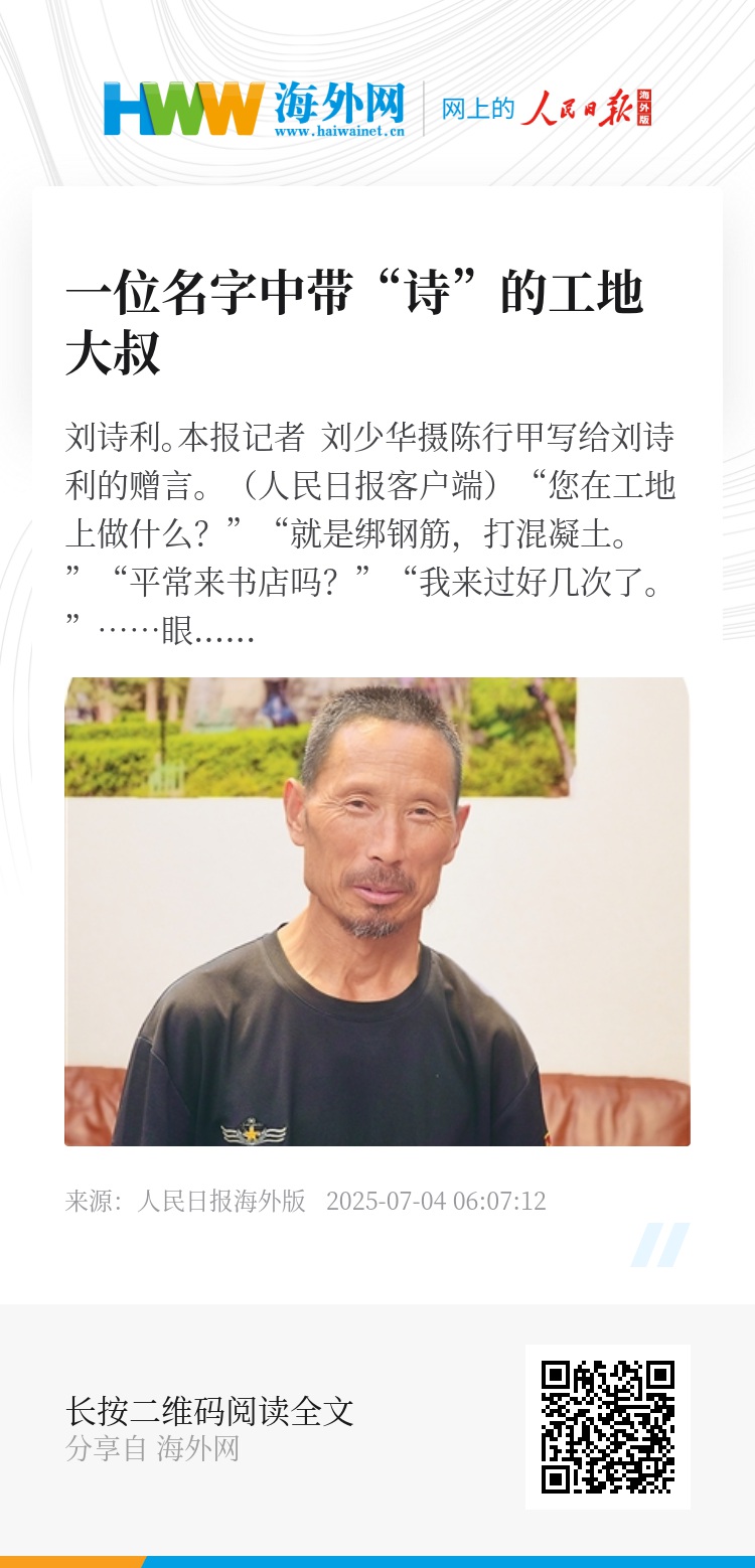 “刘诗利,这个名字中带着‘诗’的工地大叔告诉我们,只要捧起书,人人都可以成为一个自足的阅读者。”澎湃新闻的评论,也引起了很多人的共鸣。