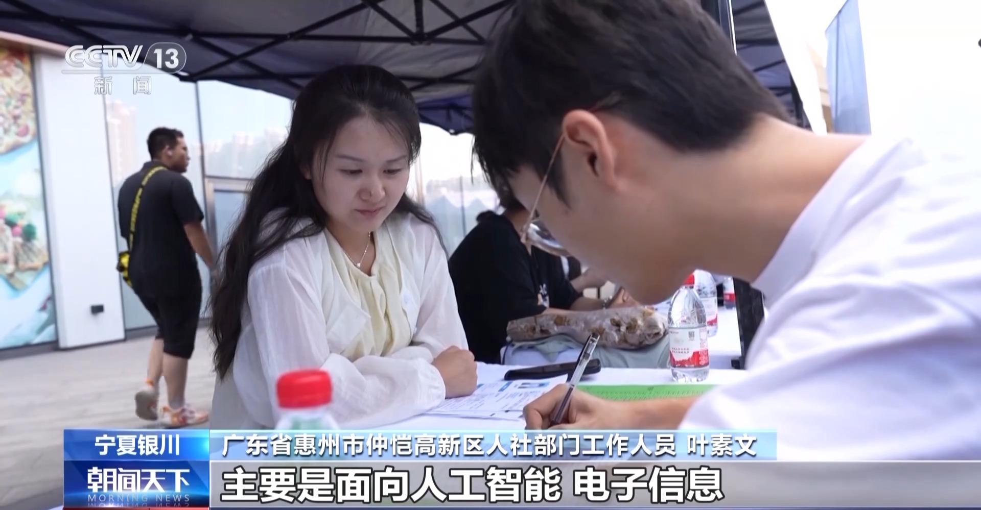 广东省惠州市仲恺高新区人社部门工作人员 叶素文:我们是来自惠州仲恺高新区的,我们这一次招聘主要是面向人工智能、电子信息还有智能制造,我们去年通过东西部协作和宁夏的人社部门已经建立联系,搭建了这个供需对接的一个桥梁。
