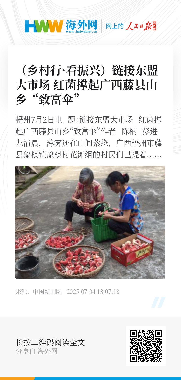 中新网梧州7月2日电 题:链接东盟大市场 红菌撑起广西藤县山乡“致富伞”