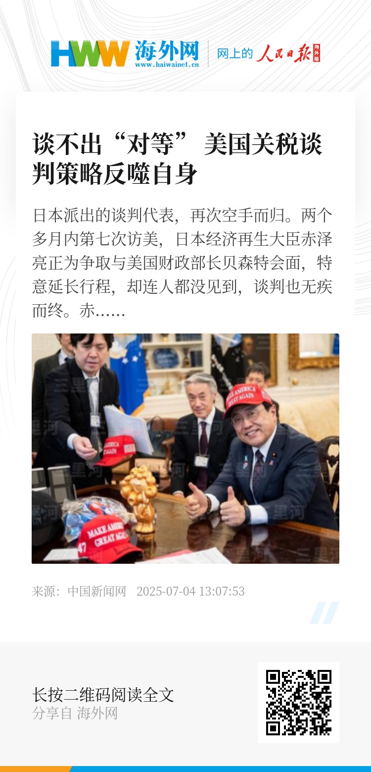 两个多月内第七次访美,日本经济再生大臣赤泽亮正为争取与美国财政部长贝森特会面,特意延长行程,却连人都没见到,谈判也无疾而终。