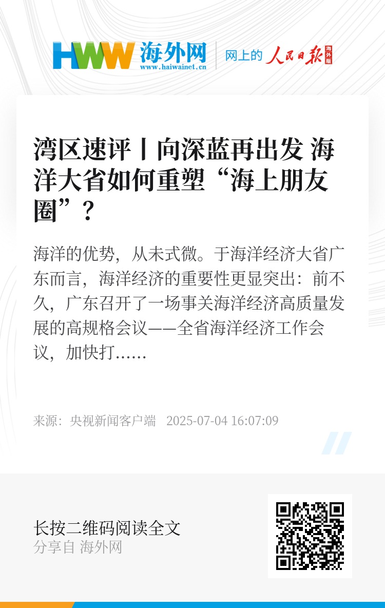 扩大海洋经济“朋友圈”,不止于海上。一子落地,满盘皆活。积极引入社会资本参与海洋经济发展,正是破解传统海洋产业融资难、推动产业升级的“活子”。《广东海洋经济发展报告(2025)》显示,广东涉海企业梯度培育体系持续完善,全省涉海企业总数已突破8万家。制度创新,为更多专精特新中小科技企业也助力“蓝色经济”扫清了障碍。