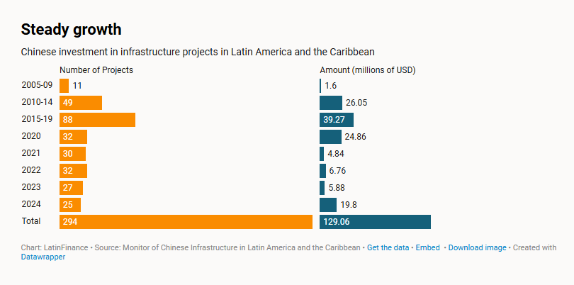 中国在拉丁美洲和加勒比地区投资基础设施项目(来源:《拉美金融》)