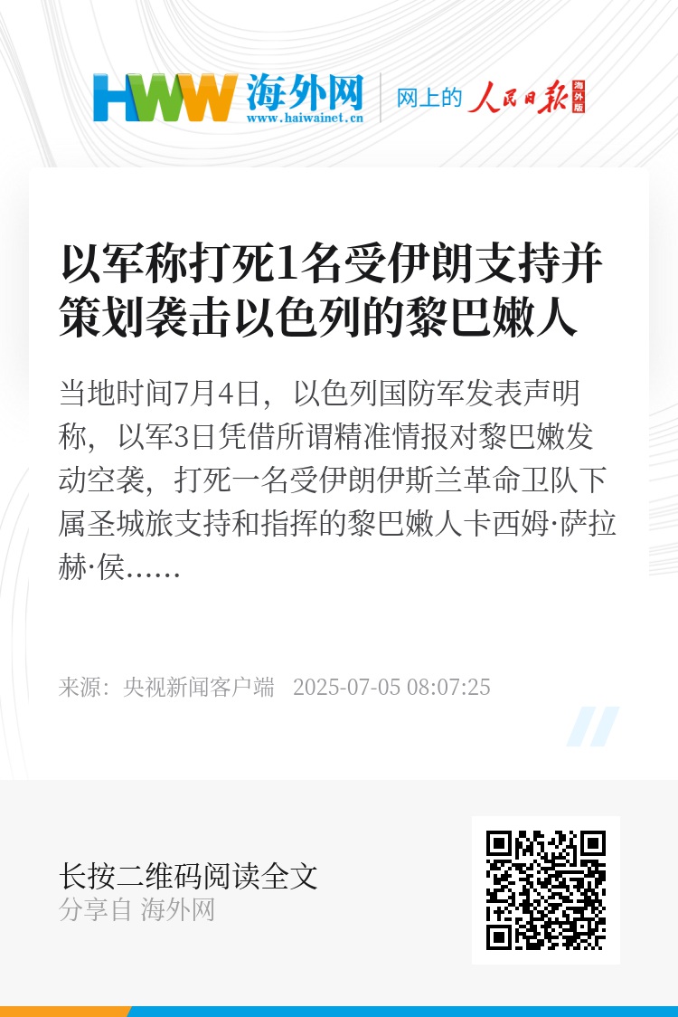 伊朗和黎巴嫩方面对此暂无回应。(总台记者 赵兵)