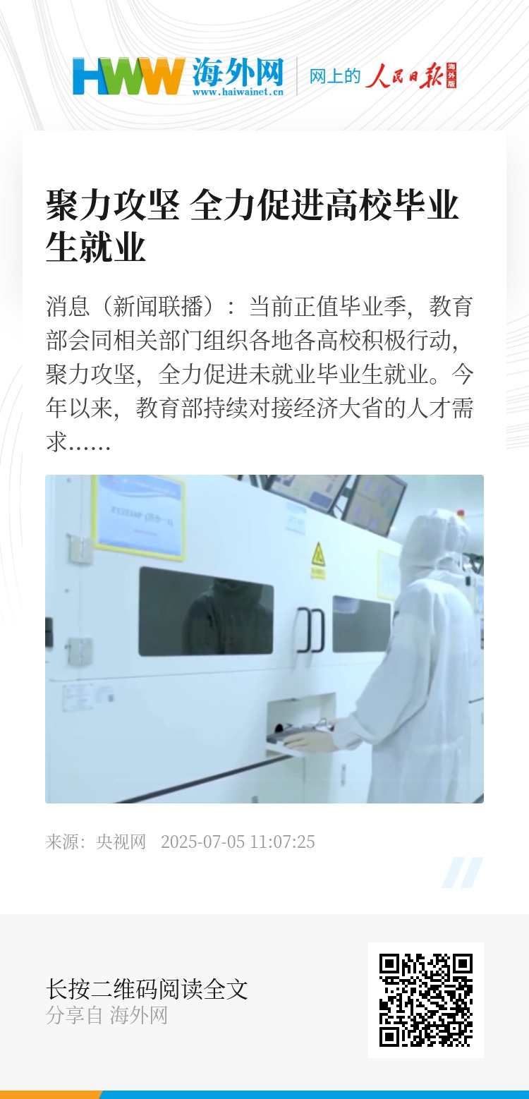 近期,教育部还将在江苏昆山、安徽滁州等多地开展校企对接活动。7月上旬,各省级教育部门计划开展省级招聘会超50场,预计提供岗位超3万个;各高校计划举办线上线下招聘会超700场,预计提供岗位超100万个。目前,国有企业招聘、基层服务项目以及地方增量性政策的岗位空间还在陆续释放。