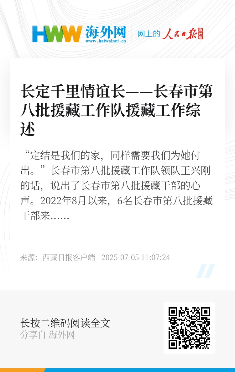 长春与定结,虽相隔千里,但情谊却如江河般奔腾不息。长春市第八批援藏干部是这情谊的传递者,他们用真心搭建起了一座座连心桥,用实际行动诠释了援藏精神,为长定两地的深厚情谊续写了新的篇章。
