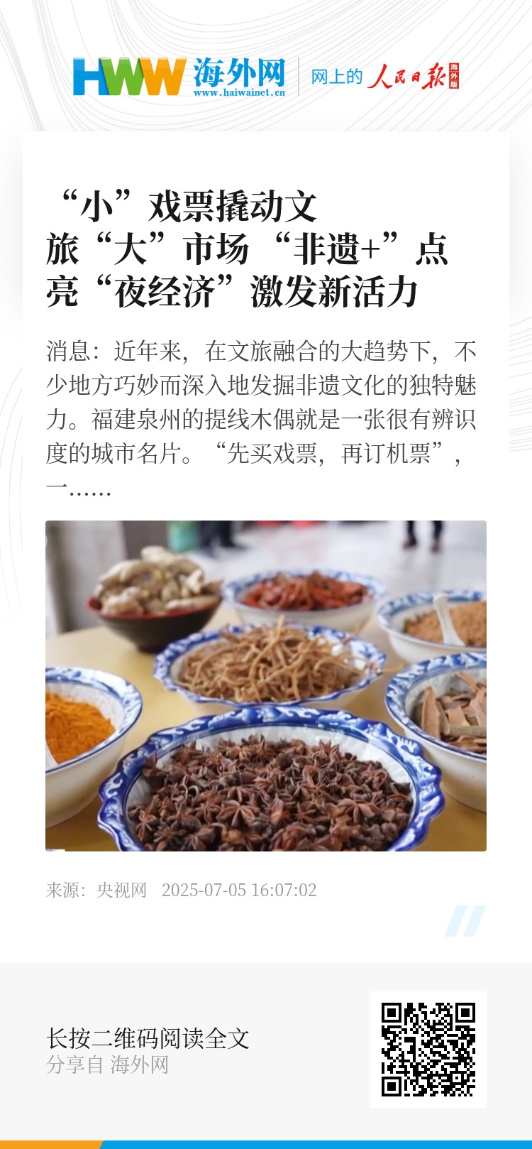 木偶戏还带动了文创产品的热销、餐饮住宿业的繁荣,也提升了城市形象,让传统非遗艺术在新时代焕发勃勃生机。