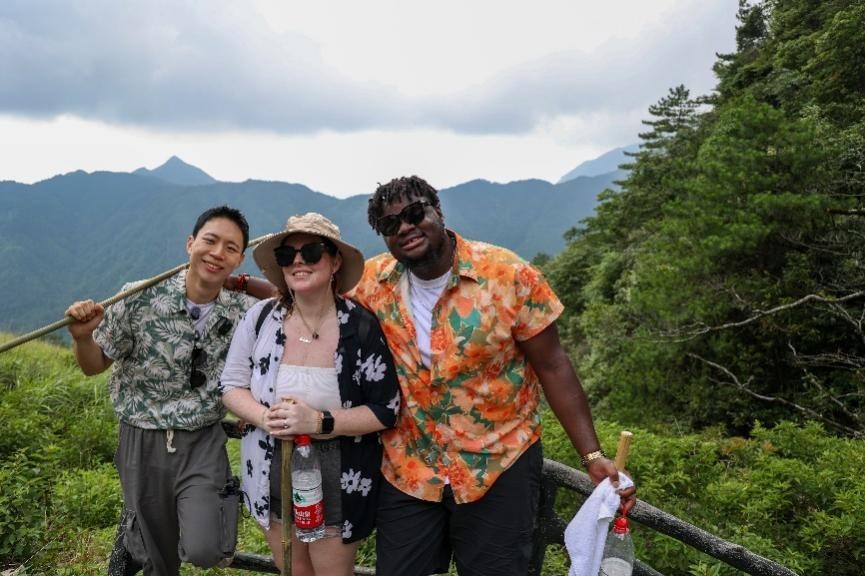 图为外国青年博主们登上武功山。海外网 谢明摄