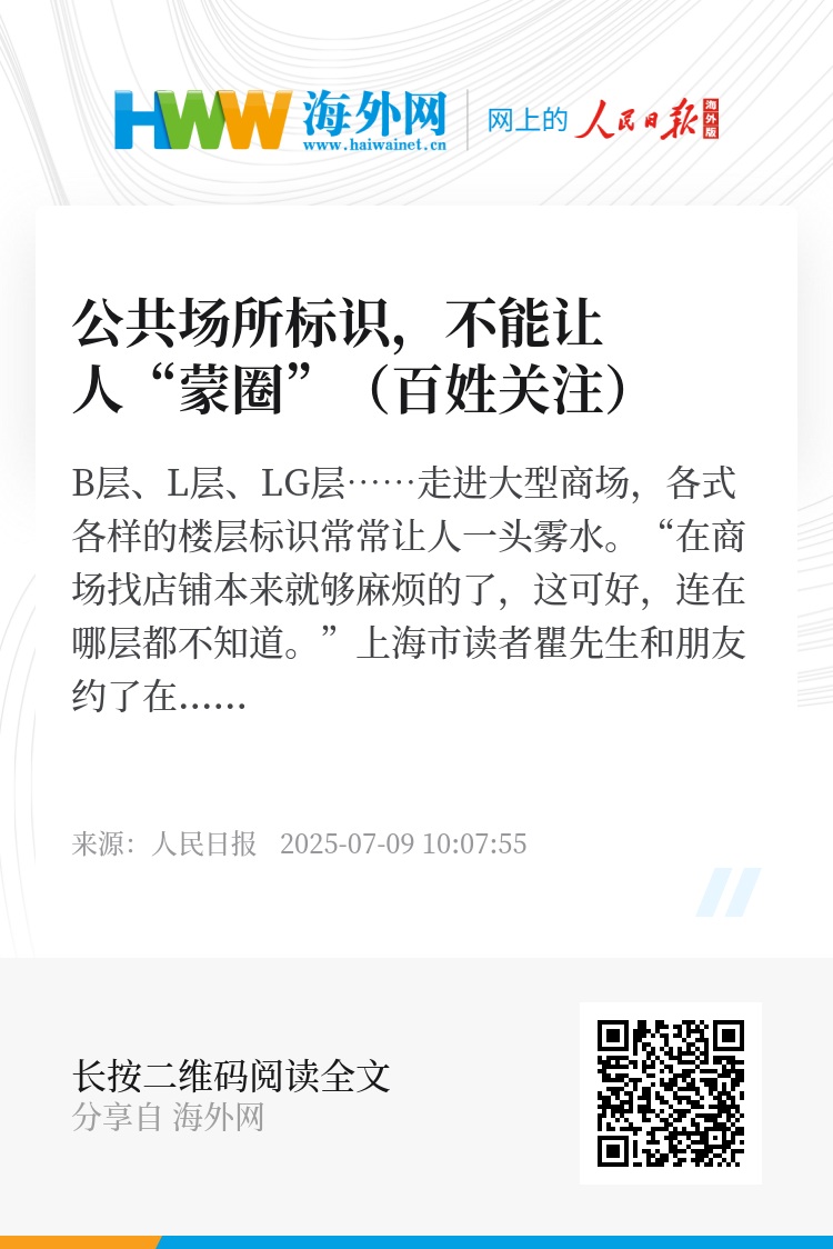 B层、L层、LG层……走进大型商场,各式各样的楼层标识常常让人一头雾水。
