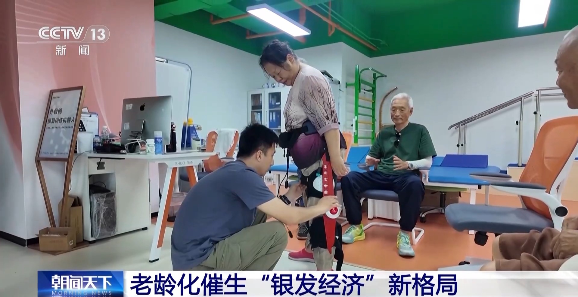 在这个外骨骼机器人康复训练中心,记者看到几位老年志愿者正在测试一款助力行走的外骨骼机器人。