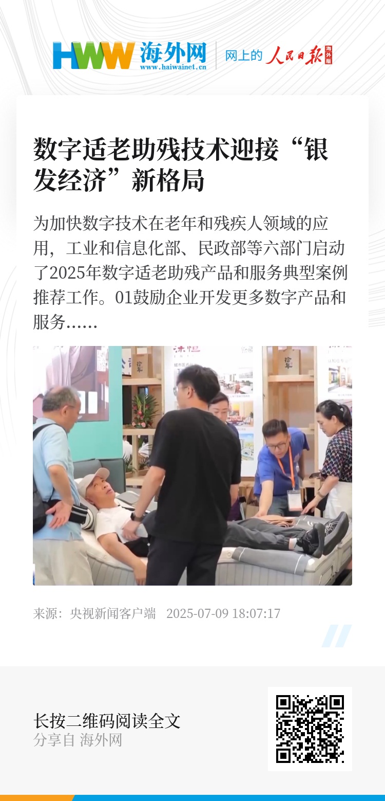 为加快数字技术在老年和残疾人领域的应用,工业和信息化部、民政部等六部门启动了2025年数字适老助残产品和服务典型案例推荐工作。