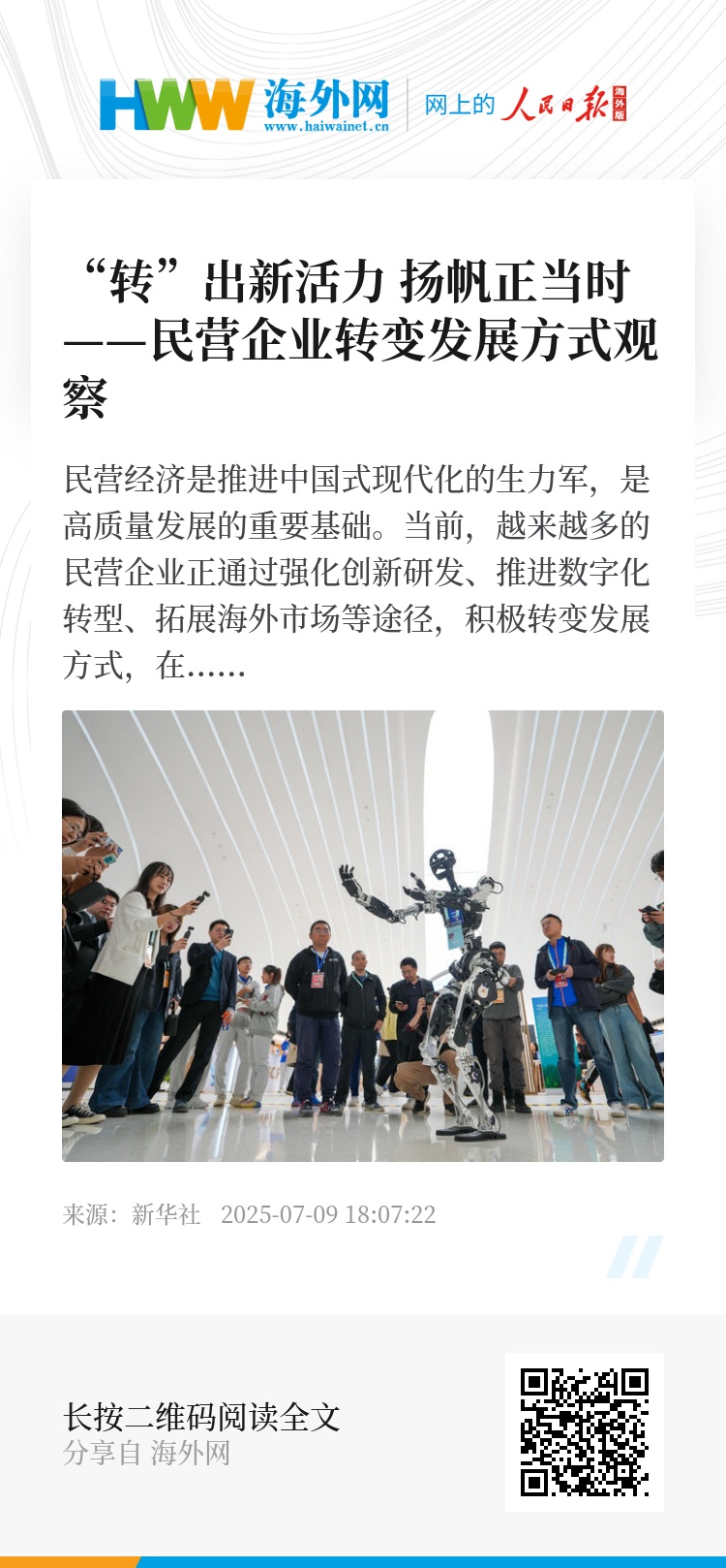 当前,越来越多的民营企业正通过强化创新研发、推进数字化转型、拓展海外市场等途径,积极转变发展方式,在经济环境变化的风浪中勇敢搏击,沿着高质量发展的道路创新蝶变。
