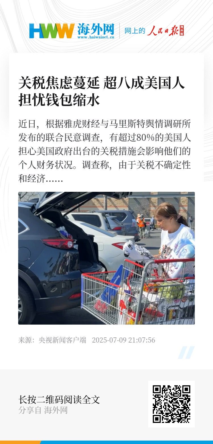 近日,根据雅虎财经与马里斯特舆情调研所发布的联合民意调查,有超过80%的美国人担心美国政府出台的关税措施会影响他们的个人财务状况。调查称,由于关税不确定性和经济前景模糊预期打击了信心,绝大多数美国人在出行、外出就餐或购物前都会三思而行。