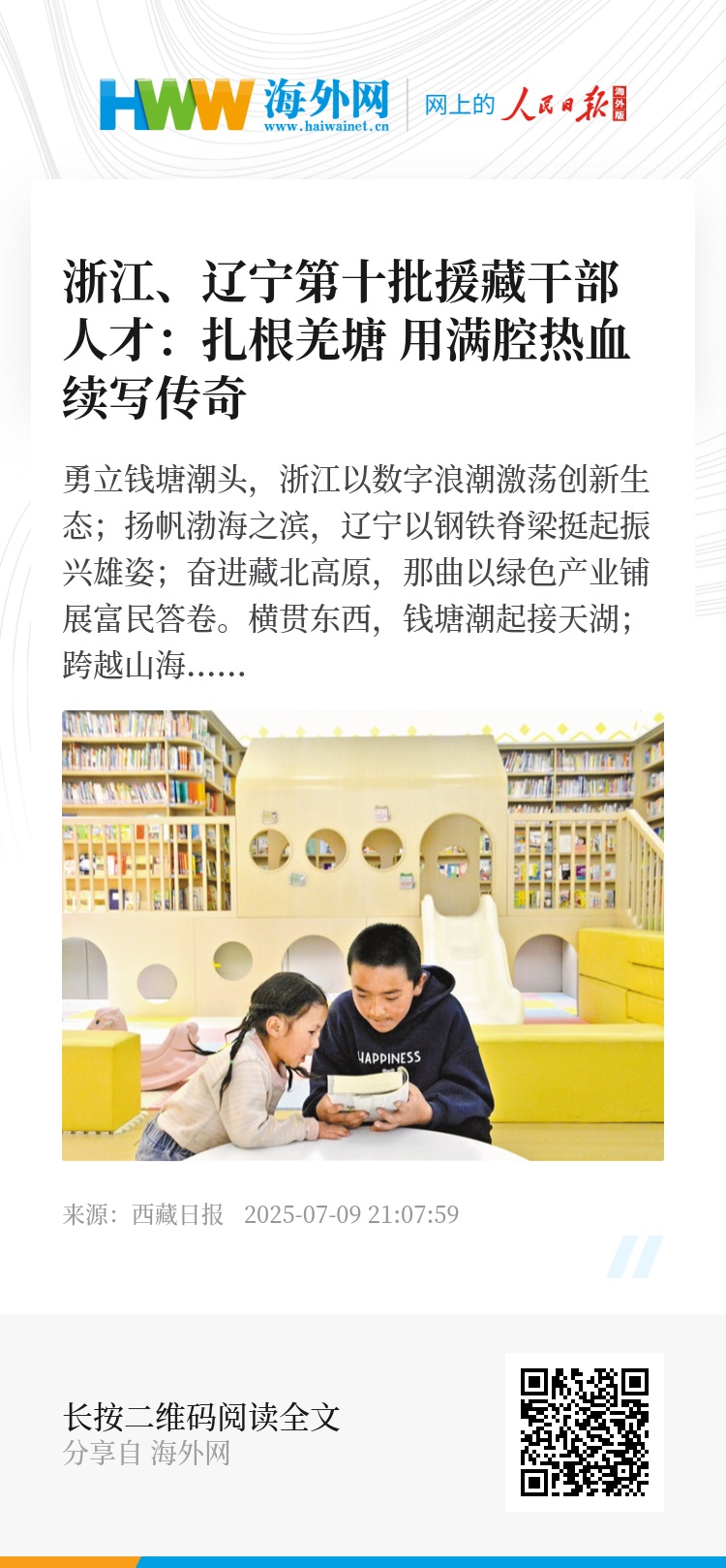 辽宁援藏举行“组团式”援藏教师“青蓝工程”师徒结对帮扶仪式,助力当地青年教师快速成长;协调那曲市教育局与沈阳市沈河区教育局签订帮扶协议,建立辽那两地教育资源互动交流长效机制;协调选派20名那曲市骨干教师和优秀管理干部赴辽宁跟岗学习、挂职锻炼;协调辽宁师范大学、沈阳师范大学、中国医科大学,在那曲市设立高等学历继续教育校外教学点,开展在职本科教育,有效提升那曲市干部人才学历水平;协调沈阳工程学院与国家电网西藏分公司实行“订单培养”;协调辽宁省12所高职院校2025年在藏投放高职招生计划300个,畅通西藏中职学生升学通道;协调辽宁农业职业技术学院、辽宁医药职业学院,与那曲市职业技术学校开展“3+3”中高职联合培养试点,带动受援地中职办学水平提升。