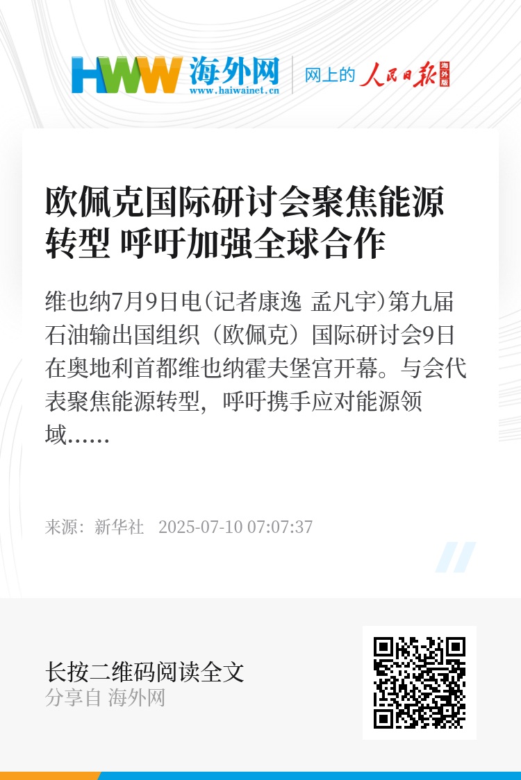 新华社维也纳7月9日电(记者康逸 孟凡宇)第九届石油输出国组织(欧佩克)国际研讨会9日在奥地利首都维也纳霍夫堡宫开幕。与会代表聚焦能源转型,呼吁携手应对能源领域及气候变化挑战。