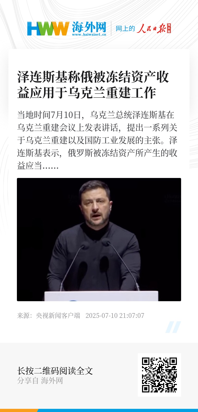 当地时间7月10日,乌克兰总统泽连斯基在乌克兰重建会议上发表讲话,提出一系列关于乌克兰重建以及国防工业发展的主张。