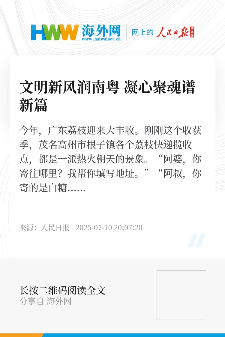 在荔枝主产区设立临时党支部,党员带头组建“荔链快送”专班,“鲜”行守护荔乡甜蜜。精神文明建设的成果,以最“接地气”的方式落地呈现,文明乡风和产业振兴奏成融合发展的“协奏曲”。