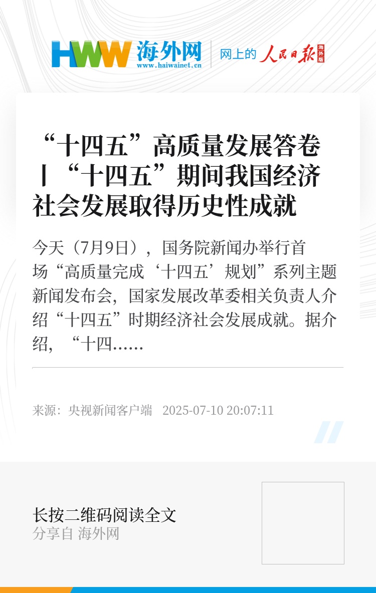 今天(7月9日),国务院新闻办举行首场“高质量完成‘十四五’规划”系列主题新闻发布会,国家发展改革委相关负责人介绍“十四五”时期经济社会发展成就。