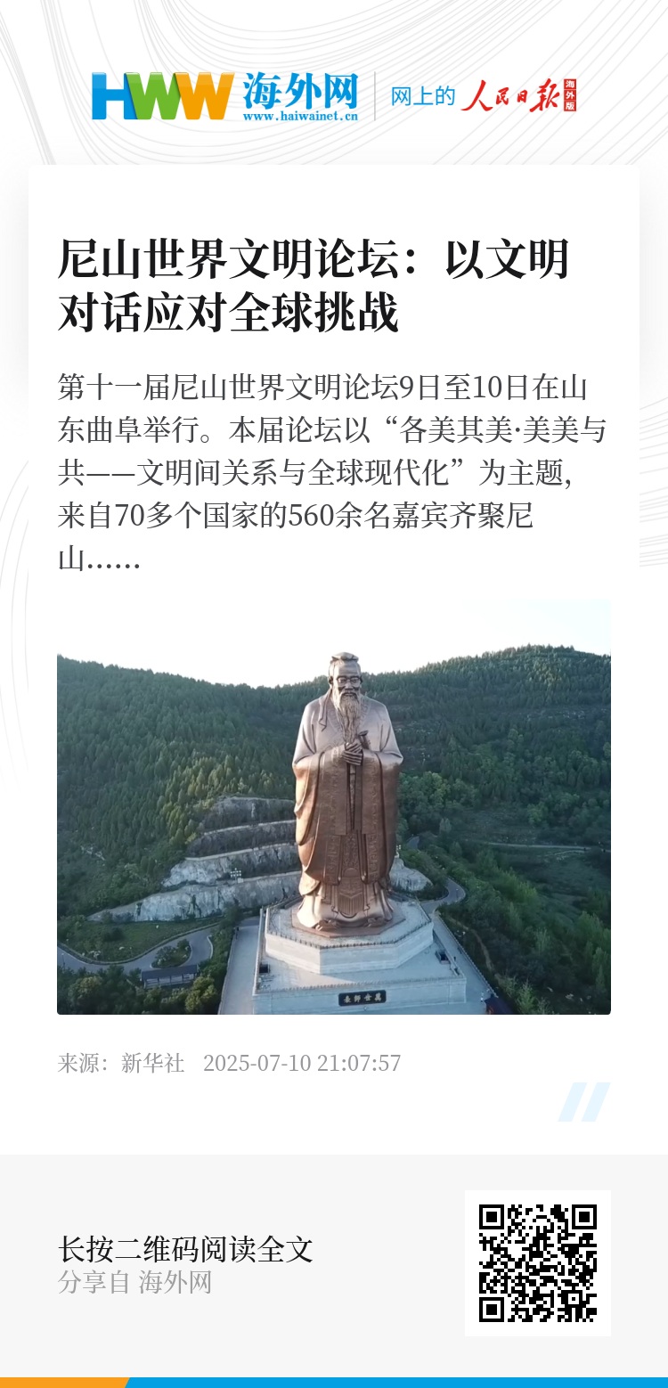 第十一届尼山世界文明论坛9日至10日在山东曲阜举行。本届论坛以“各美其美·美美与共——文明间关系与全球现代化”为主题,来自70多个国家的560余名嘉宾齐聚尼山脚下,开展文明交流和对话。