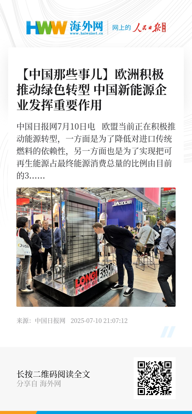 当前,中国新能源企业已成为欧洲能源转型不可或缺的合作伙伴,发挥着举足轻重的作用。中国企业在光伏等新能源领域拥有专业技术和丰富经验,可以提供各种高质量的解决方案,从而为欧洲能源转型提供有力的支持。